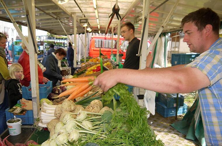 "Der Markt ist der richtige Schritt, um das Dorfleben wieder ein bisschen zusammenzuführen", erzählt Kolb, das Grüber Original. Solche Sätze freuen natürlich den Bürgermeister, der jetzt darauf setzt, dass sich die Einheimischen schnell mit dem Markt identifizieren. Klar sei jetzt bei der Premiere der Teufel los gewesen, alleine schon, weil die Leute eben mal sehen wollten, was auf dem Markttag zu los ist. Aber das ist dem Bürgermeister zu wenig: "Nur neugierig zu sein, reicht nicht aus. Die Leute müssen auch schon kaufen." Denn ganz am Ende, da sei es für die Händler immer eine wirtschaftliche Entscheidung, ob und wo sie hin fahren.
