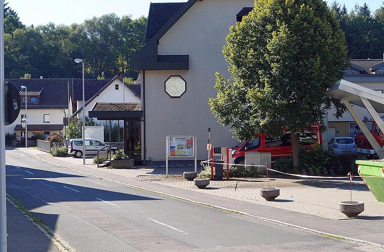Das Feuerwehrhaus der Gemeinde befindet sich direkt am Rathaus und grenzt direkt an den Parkplatz der Verwaltung, der als Veranstaltungsfläche für den Wochenmarkt genutzt wird.