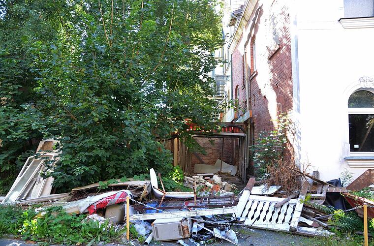 Zwischen einigen Gebäuden in der Neustadter Bahnhofstraße lagert Bauschutt und anderer Abfall. Die Nachbarn sind erbost. Der Eigentümer ist einsichtig.