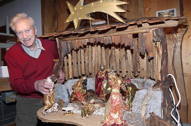 Mit 30 Stunden liegt die Krippe mit ihren großen Figuren im guten Durchschnitt. Zwischen 20 und 50 Stunden braucht der 87-Jährige, um eine Krippe fertigzustellen. 15 Stück hat er seit dem Ende seiner letztjährigen Krippenausstellung schon wieder neu gebaut. Von "langsam angehen lassen" also noch keine Spur. Nur Baukurse gibt Klaus inzwischen keine mehr, der Aufwand und die Belastung sind für einen 87-Jährigen dann doch ein bisschen groß.