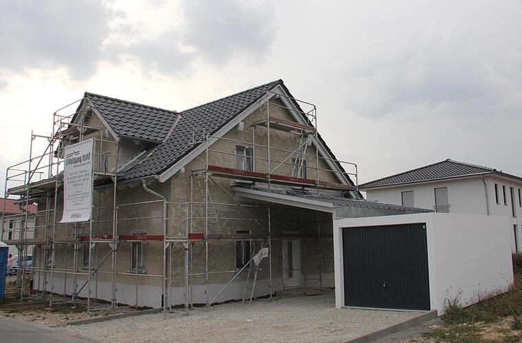 Im Neubaugebiet des Untersiemauer Ortsteils Meschenbach errichtet derzeit die Kröckel Bau aus Sonnefeld ein modernes Einfamilienwohnhaus. Die attraktive Außenansicht unterstreichen die dunkle Dacheindeckung und die hellen Fenster. Der nicht unterkellerte Neubau bietet auf allen Ebenen viel Platz. So befindet sich im Erdgeschoss das geräumige Wohnzimmer, in das viel Tageslicht einfällt. Durch eine Schiebetür ist das Wohnzimmer mit der angrenzenden großen Küche verbunden, sodass die Kommunikation sowohl im kleinen, als auch im großen Kreis möglich ist. Durch eine moderne Luft-/Wasserwärmepumpe und Fußbodenheizung im gesamten Haus wird der Neubau umweltfreundlich beheizt. Zusätzlich wurde ein Kamin mit eingebaut, der den späteren Betrieb eines Kaminofens ermöglicht. Im Dachgeschoss ist das großzügige Badezimmer mit Badewanne, Dusche, zwei Waschbecken und der Toilette untergebracht. Des Weiteren befindet sich auf dieser Etage das geräumige Schlafzimmer. Von diesem gibt es einen direkten Zugang zur Ankleide. Außerdem ist auf dieser Ebene auch das Arbeitszimmer. Der Zwerchgiebel im Dachgeschoss erhöht den Wohnkomfort im oberen Geschoss und sorgt für mehr Raumhöhe im Schlaf- und Arbeitszimmer. Eine Einschubtreppe bietet zusätzlichen Stauraum unter dem Dachspitz. Neben dem Hauseingang befindet sich die Fertigteilgarage. Mit dem Carportdach sorgt sie dafür, dass selbst bei Regen oder Schnee trockenen Fußes das Haus betreten werden kann.