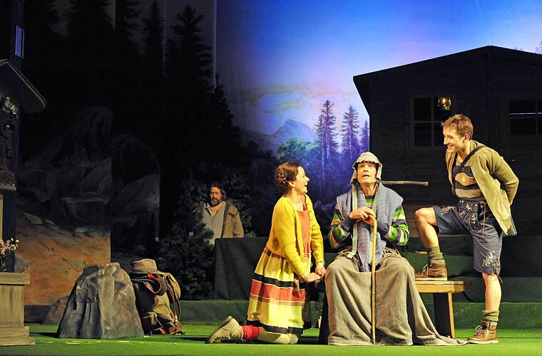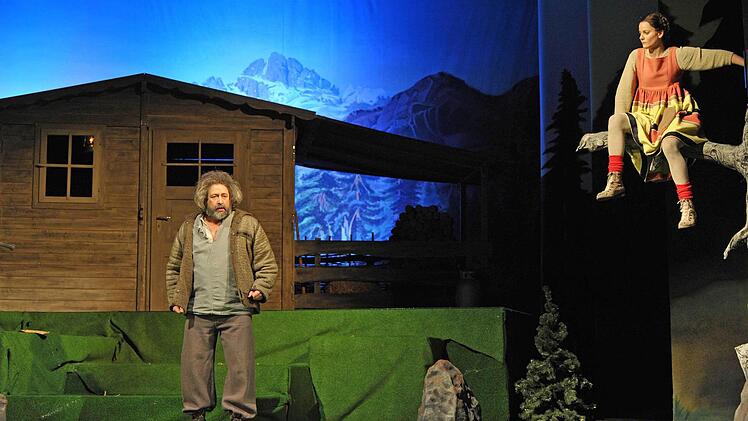 Doch wenn sich dann - mit zwei Wochen Verspätung - der Premierenvorhang tatsächlich öffnet, scheint doch alles ganz normal. Geliehene Scheinwerfer sorgen für Licht - und das spielfreudige Ensemble für lebendiges Theatervergnügen. "Das Leben ist voller Wunder" - so beginnt der Erzähler diese Geschichte des Waisenkindes Heidi, das hoch droben in den Bergen der Schweiz bei seinem äußerlich reichlich grimmigen Großvater aufwächst.