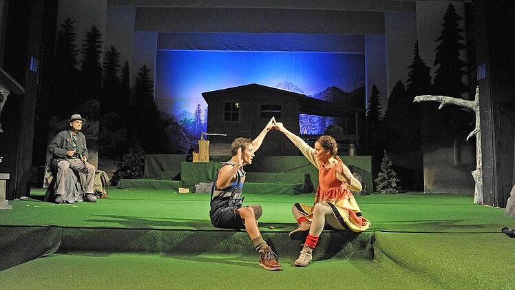 Große Gefühle vor malerischem Alpenpanorama - so bringt Straub "Heidi" auf die Bühne. Das Bühnenbild haben - bemerkenswertes Novum für Coburg - der Technische Leiter des Landestheaters Daniel Kaiser und Werkstättenleiter Thomas Müller konzipiert.