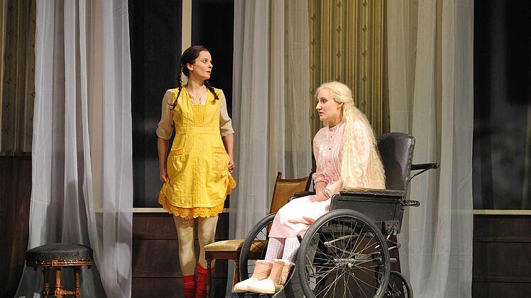 So bringt Schauspieldirektor Matthias Straub die Geschichte von "Heidi" auf die derzeit nur provisorisch bespielbare Bühne des Coburger Musentempels. Für eindreiviertel Stunden kann das Publikum dabei die Folgen des Wasserschadens vergessen.