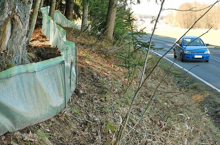 Auf dem Weg zum Rottenbach fällt ein weiterer Zaun auf, der auf der falschen Straßenseite zu stehen scheint. "Das ist ein Rückläufer-Zaun", erklärt Bär. Es gibt eine Reihe von Tieren, die immer wieder zurück in den Wald wollen. Diese Rückläufer sollen gestoppt werden.