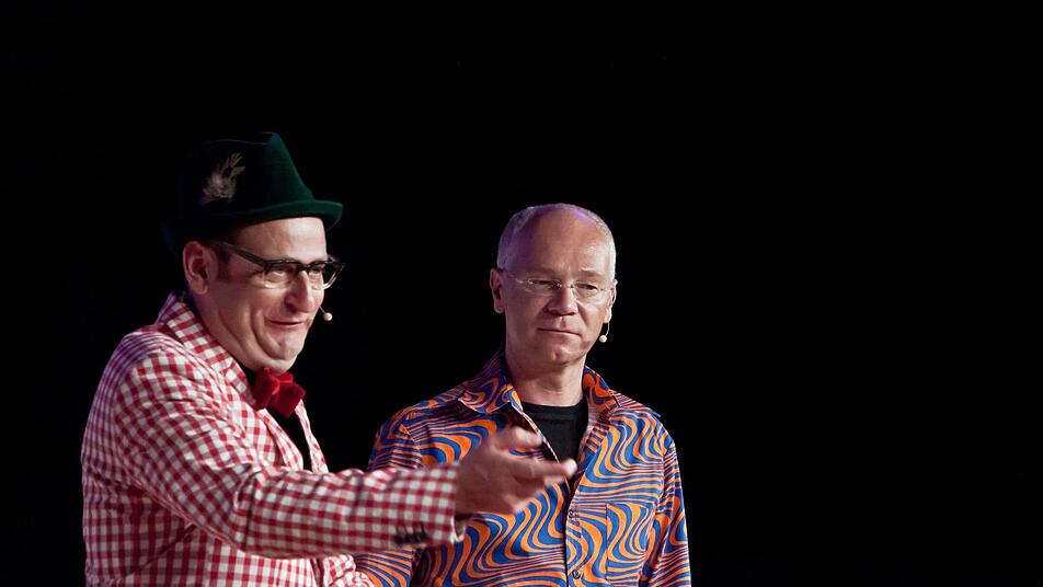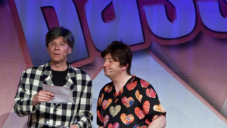 Zum Anfang des zweiten Teils offeriert Volker Heißmann dann auch noch ausdrücklich eine Selbstdefinition: "Wir sind keine Kabarettisten. Wir sind Komiker." Und er treibt im Plauderton gleich noch ein wenig selbstironische Selbsterkenntnis: "Je mehr man spielt, desto eher wird man das, was man spielt."