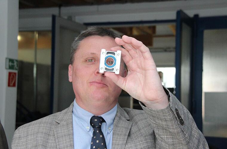 Er zeigt sich beeindruckt von den verschiedenen Techniken und der Entwicklung der Firma, die ihm Krausser bei einem Rundgang durch seine Firma erklärt. Die hat er 1990, wie er sagt, als "Ein-Mann-Unternehmen" gegründet.