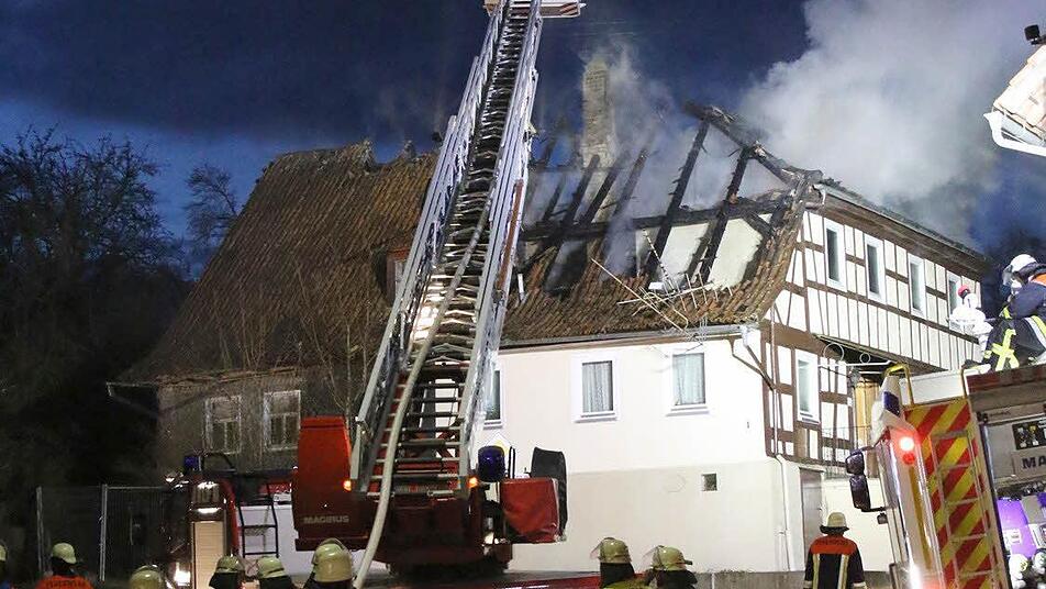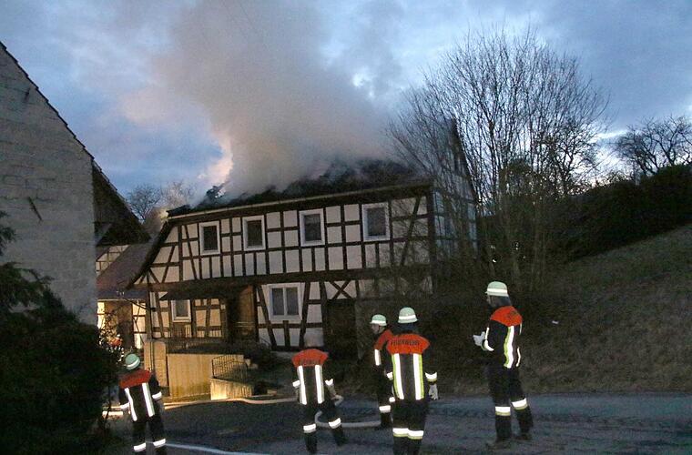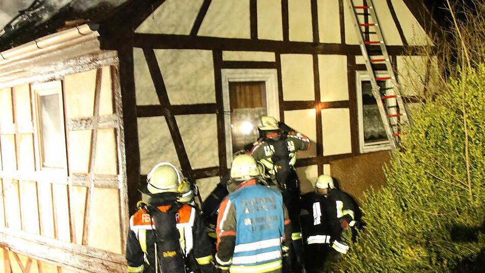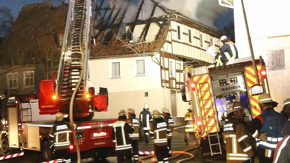 Von außen gelöscht Knapp über 100 Aktive mehrerer Feuerwehren bekämpften unter der Leitung von Kreisbrandinspektor Reinhard Hartung das Feuer. Schon bei der ersten Meldung sei klar gewesen, dass sich keine Person im Haus befinde, berichtete Hartung nach dem Einsatz. Eine Herausforderung waren die Löscharbeiten dennoch - aufgrund der Bauweise des Gebäudes. Das Fachwerkhaus hat noch alte Feldböden aus Holz, auf und in denen sich immer wieder Glutnester bildeten. "Deshalb konnten wir aus Sicherheitsgründen auch keine Person zum Löschen ins Gebäude schicken", erklärte Hartung. Lediglich durch die geborstenen Fenster wurde deshalb gelöscht.