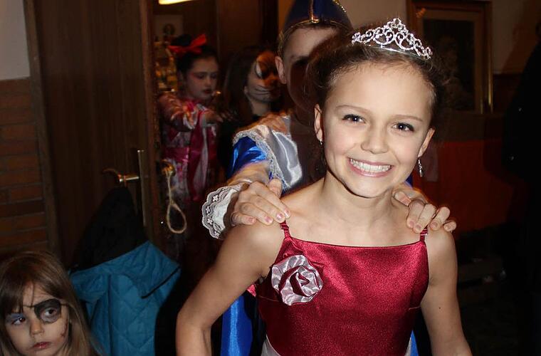 Im Waldfriedensee-Festsaal hatte alle feine Gesellschaft die besten Plätze eingenommen. Als Musiker Salvatore den Tusch erklingen ließ, hatte Ihre Lieblichkeit Finja I. und Prinzgemahl Nico I. ihren riesigen Auftritt: "Der Faschingsball ist eröffnet", jubelte das Kinderprinzenpaar und alle Kinder jubelten mit. Salvatore hatte sämtliche Faschingshits auf Lager. Als dann Prinz und Prinzessin zur Polonaise die Kinder um sich scharten, nahm sich das kleine Völkchen viel vor: Sie wollten die Nacht durchmachen.