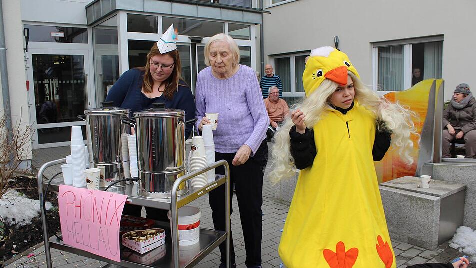 Es folgte der Kinderprinzenwagen und alle Wilhäädo Burgfräuleins als Hofstaat mit ihren Rittern, Prinzen und Prinzessinnen begleiteten ihre Majestäten. Gut gelaunte Gymnastikmädels machten Stimmung und die "Senioren auf Tour" ließen sich spazieren fahren im Faschingszug. Unterwegs gab es eine heitere Erfrischungspause vor dem Phönix-Seniorenheim, bevor es dann zum Höhepunkt Richtung Waldfriedensee ging. Unterwegs säumten dicke Menschentrauben die Wege, jubelten und waren genau so fröhlich. Kostümierte Kinder bewaffneten sich mit Taschen und Tüten, denn die Kamellen flogen allen nur so um die Ohren. Man musste nur schnell genug sein.