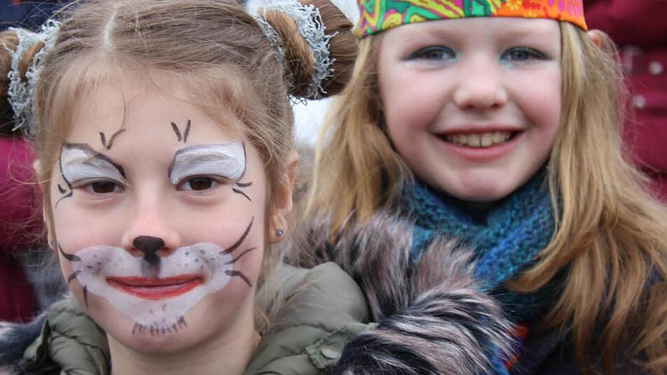 Der geliebte Gaudiwurm ist in diesem Jahr sehr sportlich geworden, er hat "abgespeckt", die fröhlichen Narren und buntkostümierten Jecken marschierten! Keine tuckernden Traktoren mehr, die Fußtruppen bewegten sich! Das war neu, nur das Kinderprinzenpaar, ihre Lieblichkeit Finja I. und Prinzgemahl Nico I., thronte in seiner offenen Luxus-Kutsche, strahlte, winkte den vielen Menschen am Wegesrand huldvoll zu und genoss alle Bewunderung. Die beiden Königskinder, Finja Glier und Nico Zeidler von der "königlichen Hofschule" in Wildenheid badeten im Zuschauermeer und platzten förmlich vor Stolz. Der Traum aller Kinder, einmal Faschingsprinzessin und Kinderprinz zu sein, hatte sich für die beiden Viertklässler der Wildenheider Grundschule erfüllt. Und stolz begleitete Schulleiter Günter Dekrell seine Wildenheider Schulkinder.