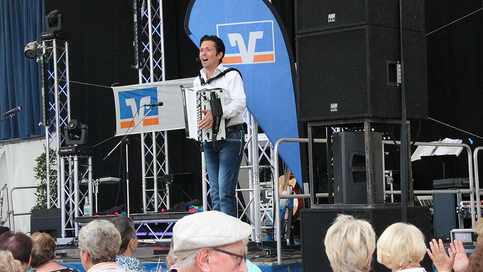 Den Seniorennachmittag beim Vogelschießen wird es im nächsten Jahr nicht mehr geben. "Nachmittag der Generationen" wird er dann heißen. Das verkünden Dritter Bürgermeister Thomas Nowak (SPD) und Oberschützenmeister Hans-Herbert Harter am Montagnachmittag gleich zum Auftakt. "Deutscher Schlager kommt auch wieder bei jungen Menschen an", sagt Thomas Nowak, der sich selbst in die Lederhose geworfen hat. Zum volkstümlichen Nachmittag im Festzelt seien alle willkommen.