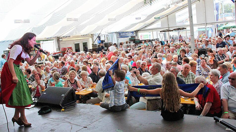 "Wenn wir schwitzen, schwitzen wir richtig!", ruft er den Besuchern zu und animiert sie zu einer Polonaise durch das Festzelt.