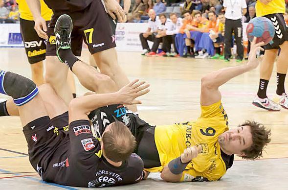 Insgesamt scheiterten die Coburger allerdings bei vier Konterversuchen. Auch deswegen lief der HSC nach 40 Minuten einem 12:15 hinterher. Ein Zeitpunkt, zu dem Kelm mit einem Krampf nach dem 13. Coburger Treffer liegen blieb. Mehrmals bot sich bis zur 45. Minute für die Coburger die Chance zum Ausgleich, aber der fiel vorerst nicht. Auch Ronny Göhl nicht: Er eroberte in doppelter Coburger Überzahl den Ball, scheiterte dann aber frei vor Badura. Wenig später nutzte der Kapitän aber seine zweite Chance - nach 47 Minuten hieß es endlich Unentschieden: 16:16.