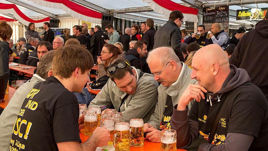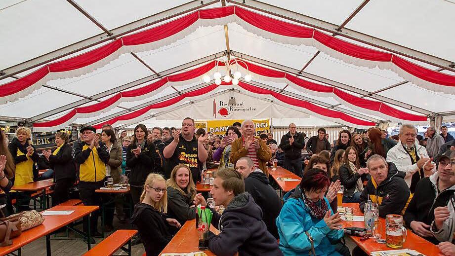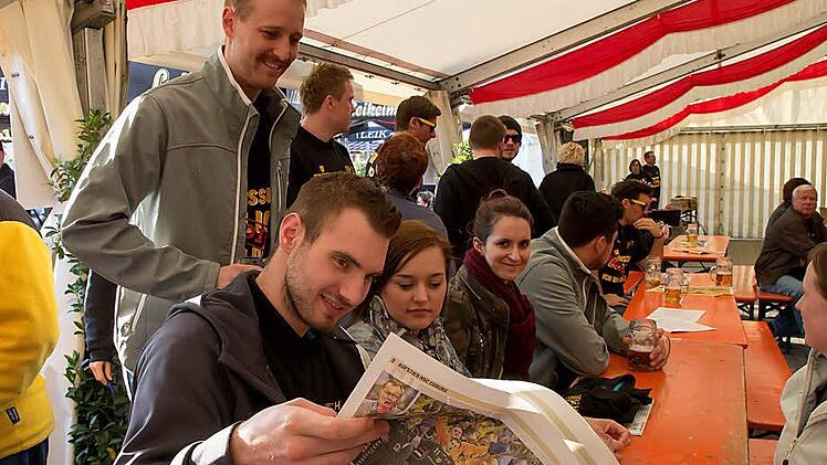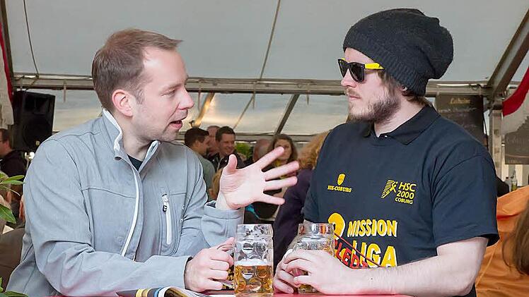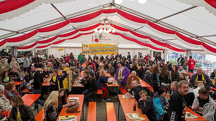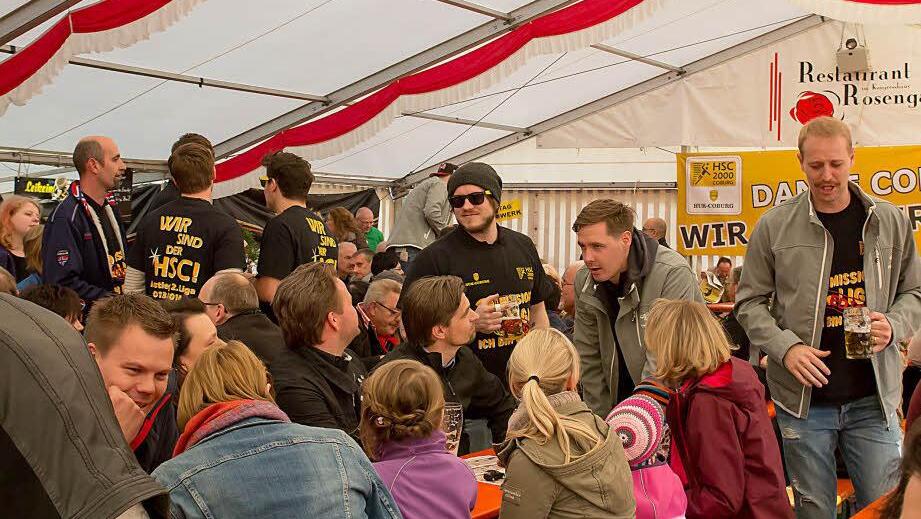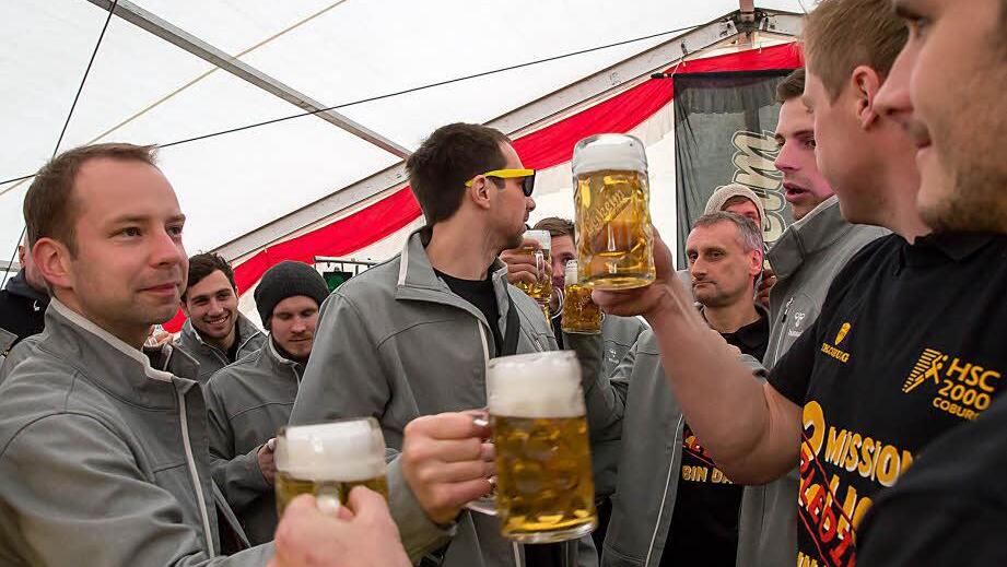 Im Festzelt ging die Post ab Fand dieser Stadtempfang für die Handballer in einem entsprechend angemessenen Rahmen statt, so ging anschließend feuchtfröhlich die Post ab: Im gut besetzten Bierzelt auf dem Coburger Frühlingsfest feierten die Fans des HSC lautstark ihre Lieblinge. Die vom Verein spendierten 200 Liter Freibier hatten die 500 Helfer und Fans freilich schnell ausgetrunken.