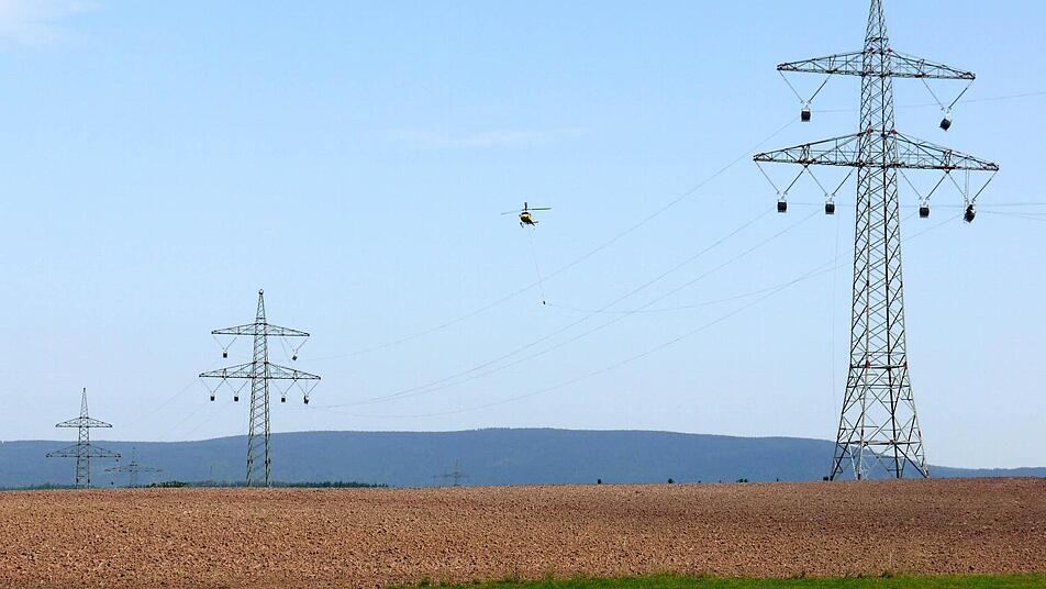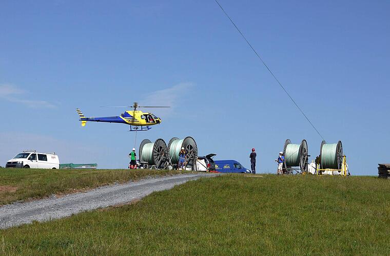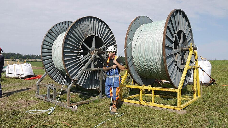 Warum der Hubschrauber zum Einsatz kam, erklärte Eugen Bößendörfer, der beim Netzbetreiber Tennet mit für den Bau der Trasse verantwortlich ist: Beim Froschgrundsee und dem Wald an der "Hohen Schwenge" wäre es technisch zu schwierig geworden, vom Boden aus die Leitung zu ziehen. "Und der Zeitvorteil nicht zu vergessen", ergänzte der Bauleiter.