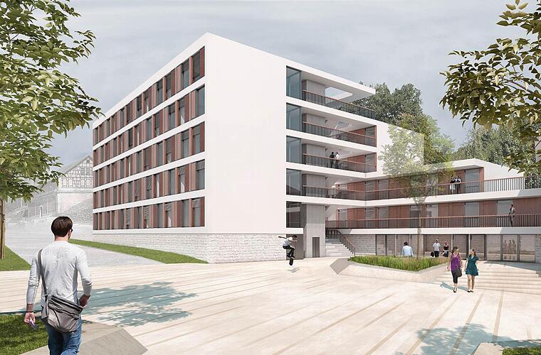 Für die Hochschule sind die Wohnheimplätze direkt am Campus ein entscheidender Standortvorteil, wie Hochschulpräsident Professor Michael Pötzl und Studiendekan Rainer Hirth deutlich machten. Zusammen mit den vorhandenen stehen dann ab 2014 650 Wohnheimplätze in Coburg zur Verfügung - bei insgesamt 4500 Studierenden. Das sei kein Luxus, betonte Pötzl: Die Mehrheit der Studenten kommt längst nicht mehr aus der Region.