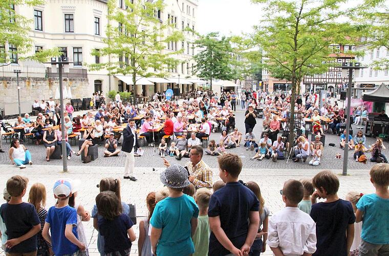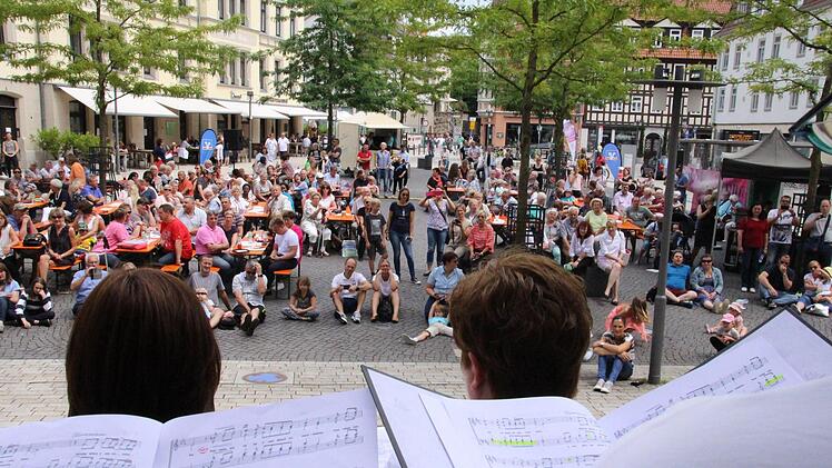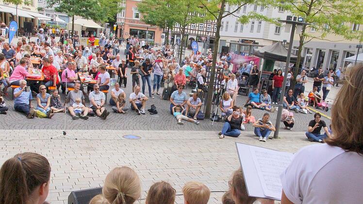 Zehn Chöre und eine Kapelle gestalten ein buntes musikalisches Programm am Albertsplatz. Eine entspannte Atmosphäre brachte die Generationen zusammen.