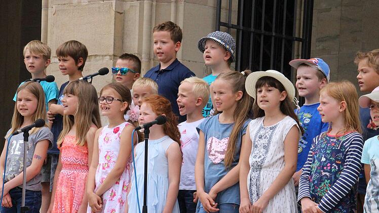 Der Blick in die erste Reihe verriet, welcher Schulchor da gerade singt: Rektorin Marie-Luise Albrecht-Müller klatschte überschwänglich und wippte im Takt. Ihr Applaus gehörte (natürlich) den Kindern aus dem Schulchor der Heimatringschule, der gemeinsam mit dem Chor der Grundschule Weitramsdorf das Publikum zum Mitsingen animiert hatte.