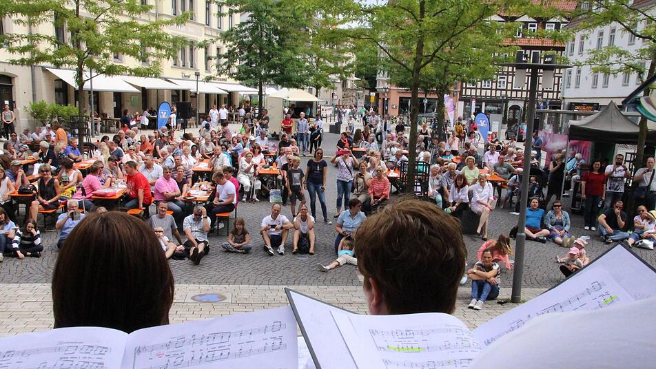 Am Nachmittag begeisterte die Sängergemeinschaft Rohrbach-Zeickhorn und Lützelbach Neershof, sowie der Chor "In Joy" aus Lichtenfels mit internationalen Songs. Der Hochschulchor "Die Klangfänger" hatte die schwierige Aufgabe, das Publikum zwischen 16 und 17 Uhr zu halten - was dem beliebten Chor in Coburg gut gelang, hatte er doch seine eigene kleine Fangemeinde angezogen.
