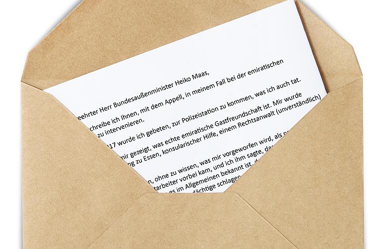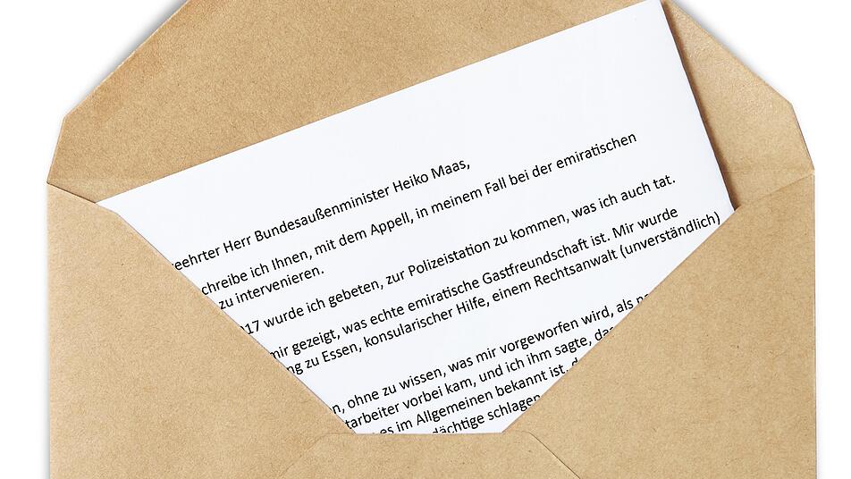 Laut Urteil soll ein in Dubai inhaftierter Coburger lebenslänglich hinter Gittern bleiben. Nun schreibt er an Bundesaußenminister Heiko Maas. Wir dokumentieren seinen Brief im Wortlaut.