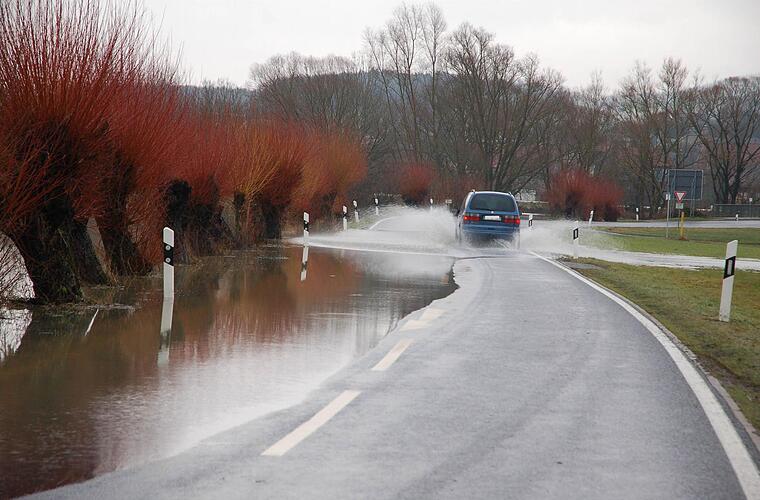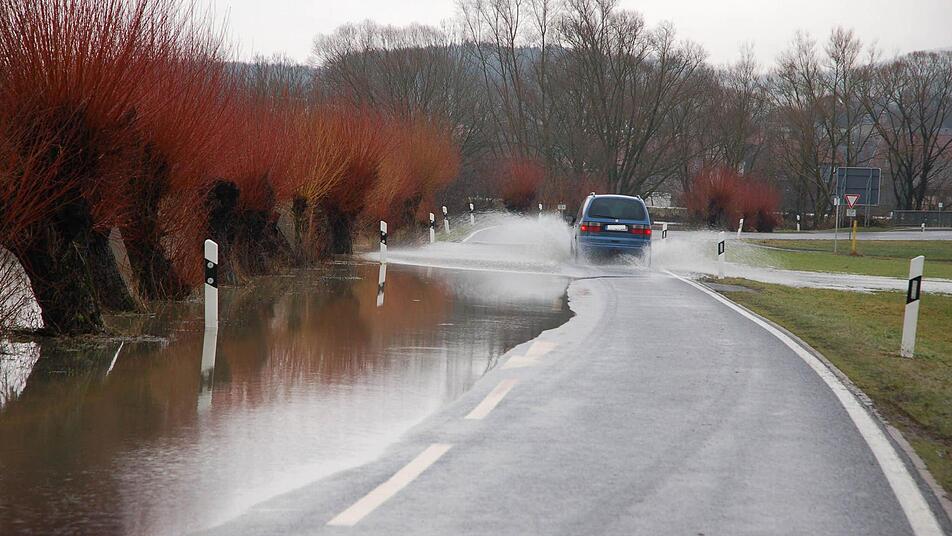 Im Raum Coburg sorgen Überschwemmungen für Verkehrsbehinderungen: Tauwetter und Regen nach den heftigen Schneefällen sorgten am Montag für Überschwemmungen im Itzgrund. Teilweise wurden bereits Straßensperrungen notwendig.