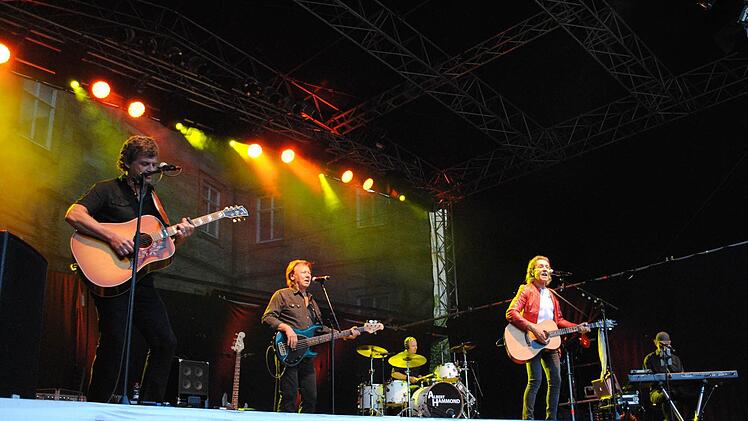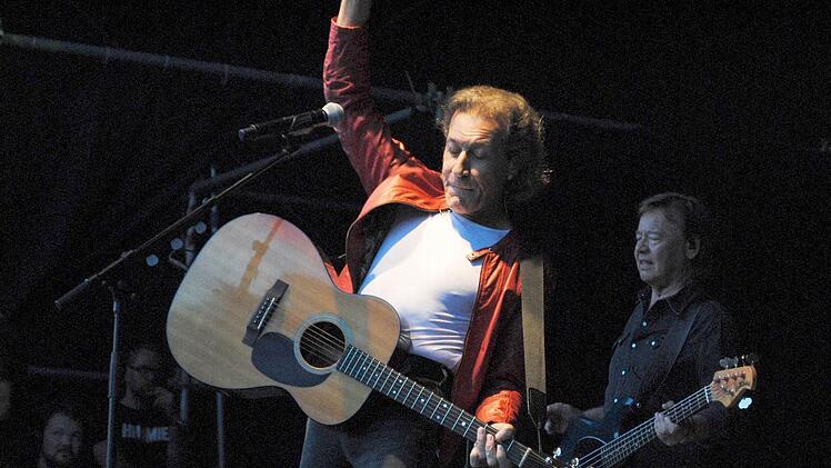 Und ließ 40 Jahre Musikgeschichte sehr lebendig werden. Zwar nichts Neues, aber noch einmal erlebten die Zuhörer im erneut vollen Schlosshof den Schrei nach Freiheit und Frieden der 60er Jahre, dann aber auch viele Höhepunkt unseres musikalischen Gedächtnisses aus den folgenden Jahrzehnten.