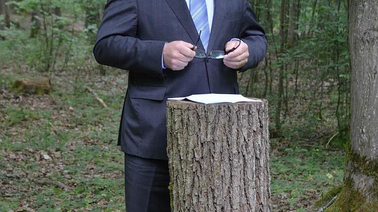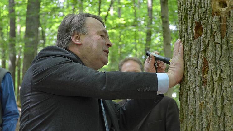 Im Stadtwald von Bad Rodach wurde das Leben und die Bedeutung des Schwarzspechts für das Ökosystem Wald gründlich erforscht. Forstminister Helmut Brunner ließ sich die Ergebnisse vorstellen.