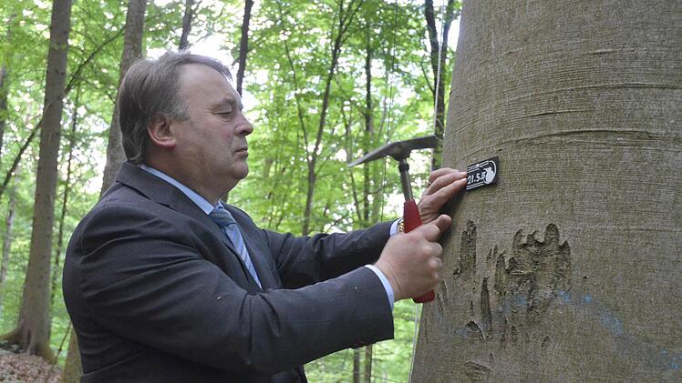 Naturschutz gehört immer dazu Das Jahr 2015 wurde von Helmut Brunner zum Jahr des Waldnaturschutzes erklärt. Naturschutz spielt aber nicht erst seit diesem Jahr eine große Rolle in der Arbeit der Förster des Amtes für Ernährung, Landwirtschaft und Forsten (AELF). Norbert Wimmer (Natura 2000 Beauftragter des AELF) und Anke Schäfer als betreuende Försterin betonen, dass sie bei den Waldbesitzern mit Anliegen wie dem Schutz solcher Höhlenbäume meist offene Türen einrennen. Dass es diesen dabei nicht um das Geld aus dem Förderprogramm geht, zeigen Zahlen. Wer zustimmt, einen Höhlenbaum zwölf Jahre nicht anzurühren, erhält eine Zahlung von 95 Euro - einmalig für den gesamten Zeitraum.