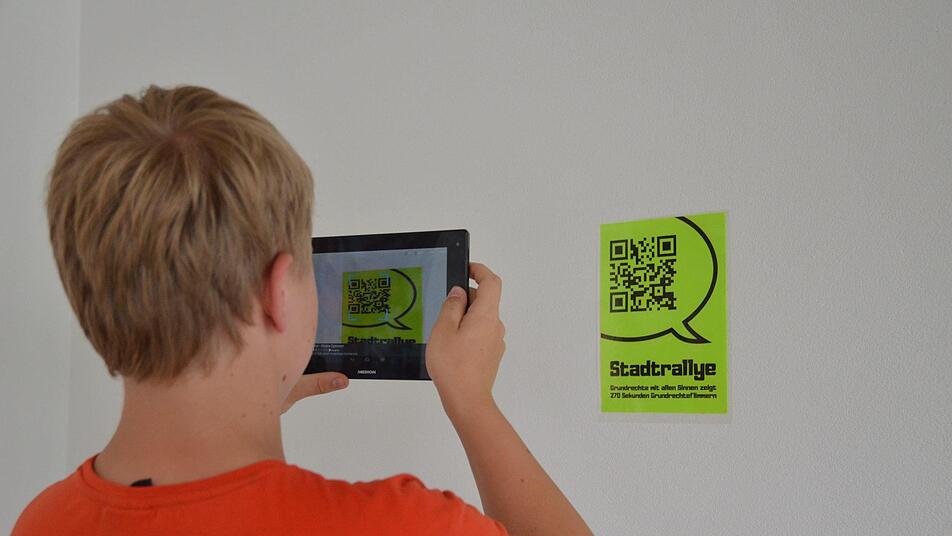 Vorgestellt wurden die Clips im Rahmen der interaktiven Stadtrallye "Grundrechte mit allen Sinnen". Sie richtete sich an Schulklassen der siebten und achten Jahrgangsstufen der Coburger Mittelschulen. 120 Schüler machten mit und waren dabei die ersten, die per QR-Code die Clips sehen durften. Ramona Scheibe, Praxisstudierende beim Amt für Jugend und Familie, erarbeitete die Rallye und führte sie in Zusammenarbeit mit einer Reihe von Einrichtungen und Organisationen durch. Die Jugendlichen führte ein Laufzettel auf einen Streifzug durch die Stadt.