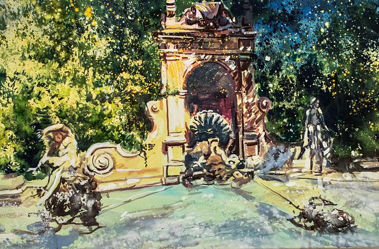 So sind in der Schau im Kunstverein auch fünf neue Dozenten mit Arbeiten vertreten. Das gilt für Birgit Maria Götz, die den Workshop "Der andere Blick - Grundlagen des Zeichnens im Raum" leiten wird und in der Ausstellung mit dem Motiv "Alfred Brunnen im Coburger Hofgarten" vertreten ist.