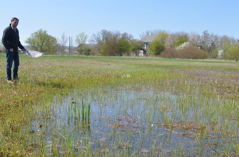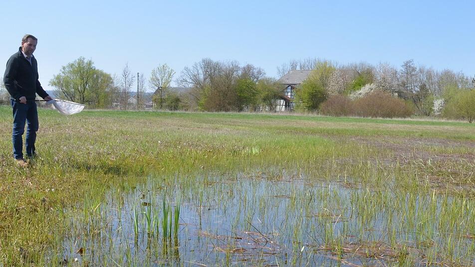 Sie sind flach, voller Pflanzen und ohne viel Bewuchs an den Rändern. Genau deswegen sind die drei Kleingewässer nahe der Itz bei Kaltenbrunn so wertvoll für ganz besondere Tiere. Wer jetzt dort die Augen offen hält, kann eines beobachten, das es gar nicht so leicht zu sehen gibt. Um die Winterlibelle - um die geht es - aus der Nähe bestaunen zu können, ist ein Netz nötig und eine Sondergenehmigung, die Alexander Ulmer als Geschäftsführer beim Landesbund für Vogelschutz tatsächlich hat.