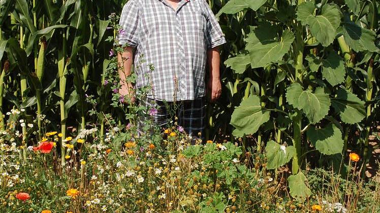 Wenn Gerhard Jöchner vor seinem Maisfeld steht, umgibt ihn eine reiche Blütenpracht. Er ist einer der Gemündaer Landwirte, die in Zusammenarbeit mit dem Imkereiverein um ihre Maisfelder umfangreiche Blühstreifen angelegt haben. Um Imkern und Natur ein wenig zu helfen, nehmen diese Bauern Ertragseinbußen in Kauf.