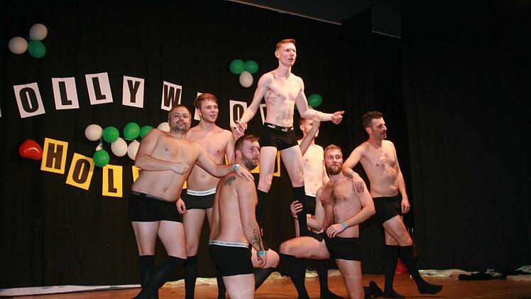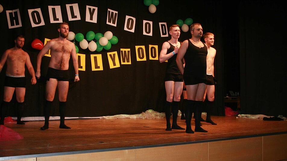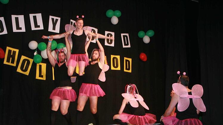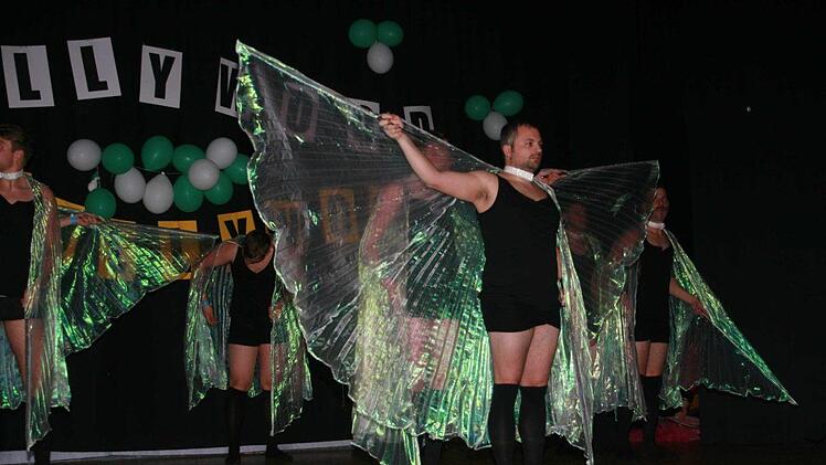 Das Tanzen auch im "hohen Alter" funktioniert, bewiesen äußerst hingabevoll die "Dancing Queens" (Yvonne Bräutigam, Tanja Friedel, Alina Kaiser, Jenny Kestler, Jenny Puff, Susanne Roschlau, Sabine Wank, Michaela Woweries) die zusammen über 600 Lebensjahre auf die Bühne brachten. In Szene setzte den spaßigen "Hexenschusstanz" die Trainerinnen Kim Müller und Susanne Roschlau. Die beiden waren es auch, die das Männerballett des Obst-und Gartenbauvereins unter ihre Fittiche nahmen und Yanek Hopf, Michael Roschlau, Christian Valtin, Stephan Valtin, Dominik Werner, Stefan Wegner und Sylvio Woweries zu Höchstleistungen brachten.