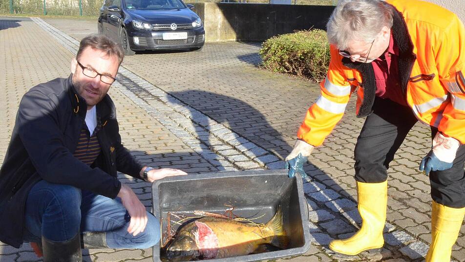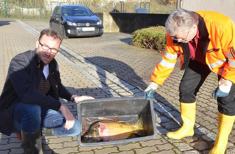 Der Karpfen ist kapital. Er füllt den schwarzen Plastikbehälter fast ganz aus, in dem ihn Lothar Mozzo aufgehoben hat. Auf sieben Kilo oder mehr schätzt der Leiter der Weidhäuser Kläranlage den Fisch. Aufgehoben hat er ihn, weil er keines natürlichen Todes starb. Ein Räuber hat ihn gefangen und angefressen. Der Verdacht fällt auf einen Otter.