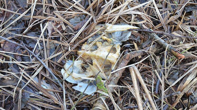 So frisch die gerade gefundenen Karpfen sind, sind es wohl doch nicht die ersten, die einem Eindringling zur Beute wurden. Bei genauerer Suche finden sich am Ufer auch die Skelette weiterer Fische. Sie sind zwar gründlich abgenagt, scheinen aber auch noch nicht sehr lange dort zu liegen.