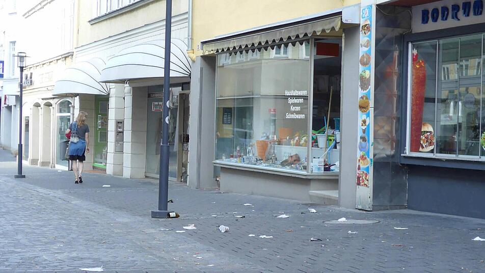 Mann stirbt nach Auseinandersetzung in Bar in Coburg Am letzten Samstag im Juli hat es wieder schlimm ausgesehen: Als um 8 Uhr die ersten Geschäfte im Steinweg aufmachten und die frühen Kunden des Bauernmarktes ihre Einkäufe erledigten, haben die Betreiber zuerst vor ihren Schaufenstern und Eingängen gekehrt. Jede Menge Unrat - zerbrochene Gläser und Flaschen, Papier, Zigarettenkippen, mitunter auch verschiedene Ausscheidungen erinnerten an die vergangene Nacht. Im Unterschied zur Vergangenheit waren die Mitarbeiter der Stadtreinigung noch nicht da gewesen.
