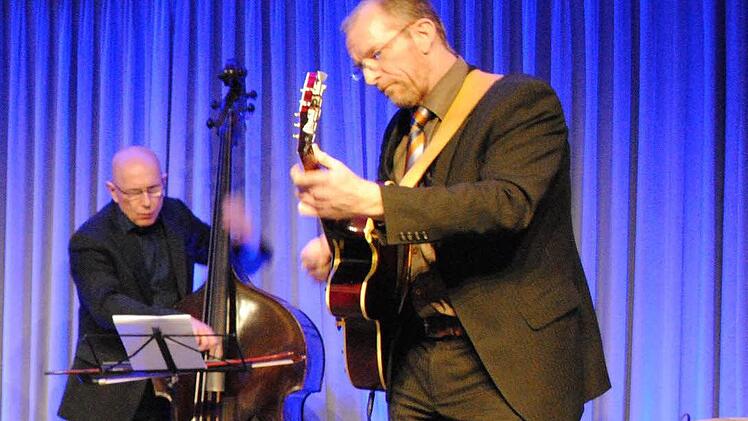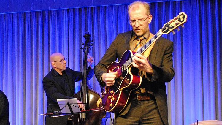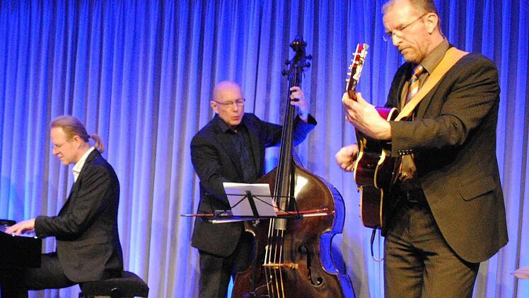 So selbstverliebt sich Jörg Seidel gibt, so hingebungsvoll fügt er sich an seiner vollakustischen E-Gitarre mit dem Pianisten Bernhard Pichl und dem international nicht weniger renommierten Bassisten Rudi Engel, beide Professoren an den Hochschulen Würzburg und Nürnberg und kongeniale Partner Seidels, in die Suche nach dem noch leiseren, noch "wahreren", reinen Klang, rhythmisch in größter Souveränität scheinbar anstrengungslos tänzelnd, atmend, schwerelos lebend.