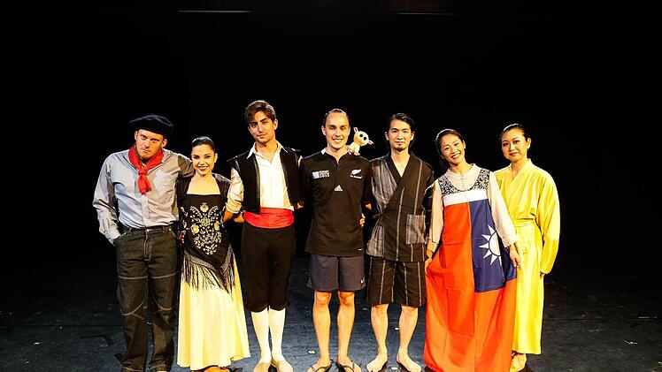 Im witzigen Rahmen zu den einzelnen Tanzbildern treffen die Ensemblemitglieder jeweils in ihrer Nationalität und einer typischen Verhaltensweise aufeinander. Der Franzose Sylvain Guillot mit dickem Baguette unter dem Arm verfällt in Bussel-Orgien, die der Japaner Takashi Yamamoto konsterniert erstarrt mit einer kleinen Verbeugung quittiert. Der Neuseeländer Joshua Limmer beschwört schon mal den wilden Geist der Aborigines in der Begegnung mit den anderen. Man hat's nicht leicht mit der Kommunikation.