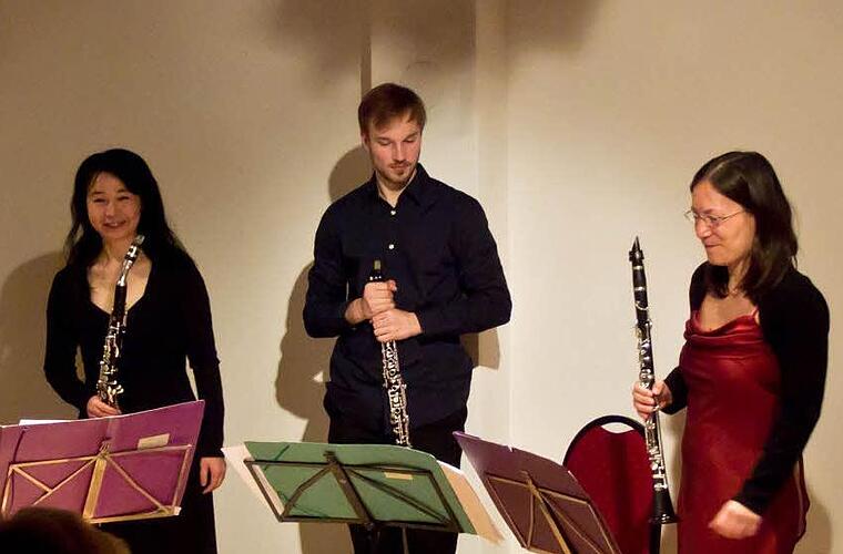 Mit reaktionsschnellem Zusammenspiel und jederzeit souveräner Technik beeindruckten Sayaka Schmuck und Sebastian Pigorsch auf der Klarinette sowie Rumi Sot-Klemm am Bassetthorn und der Bass-Klarinette. Klar, dass das applausfreudig gestimmte Publikum ausdauernd Beifall spendete und schließlich noch mit zwei Zugaben belohnt wurde - Ausklang des gelungenen Auftakts eines ehrgeizigen neuen Festivals.