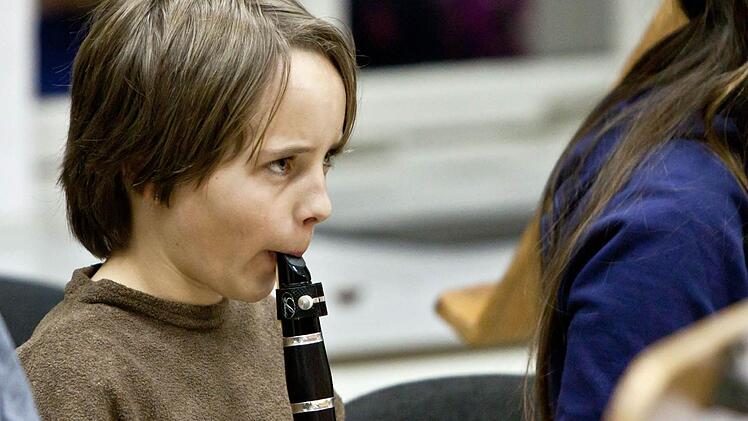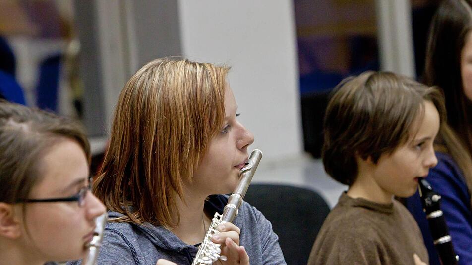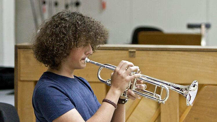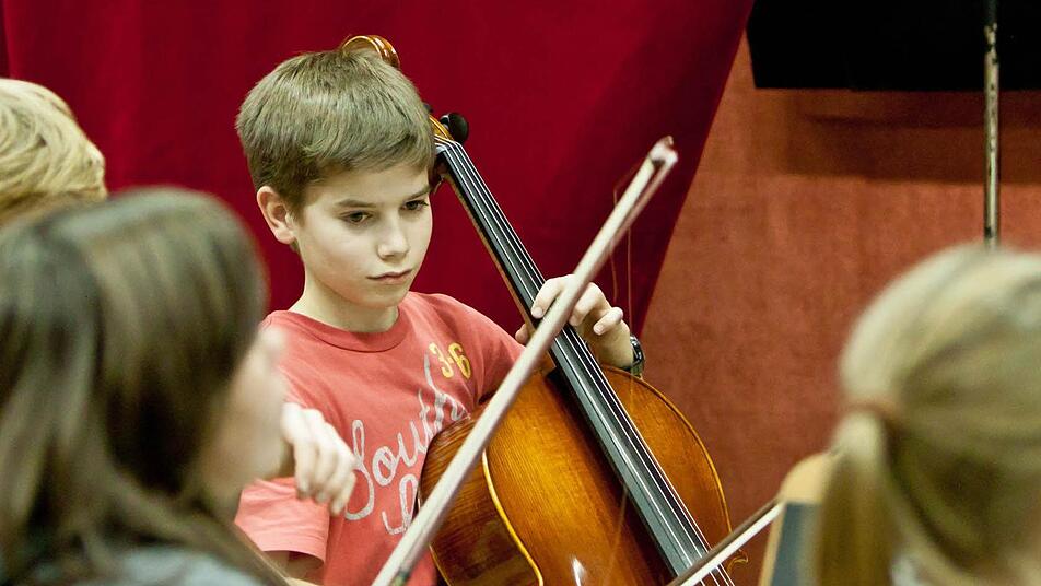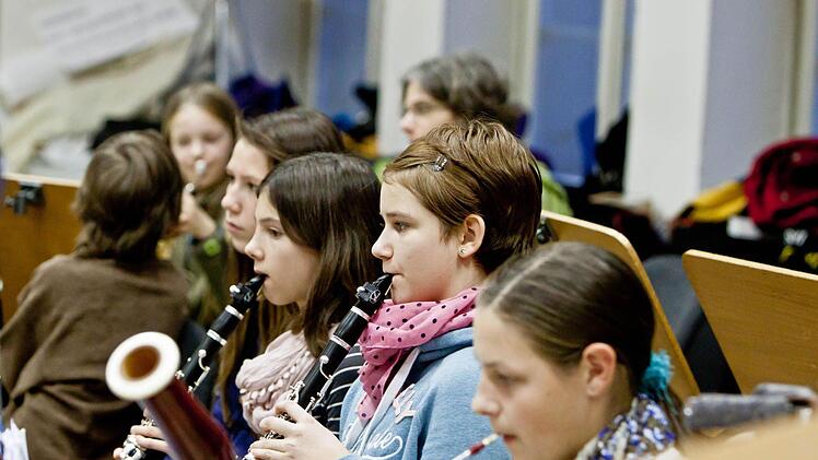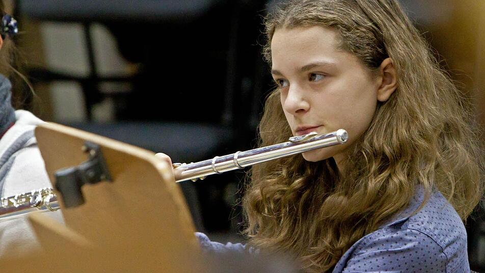 Lampenfieber? "Hab' ich nicht", sagt Sophia - "noch nicht". Bei der Probe im engen Orchesterprobensaal des Landestheaters jedenfalls wirkt sie konzentriert, lässt sich auch überhaupt nicht irritieren, wenn Anna-Sophie Brüning am Dirigentenpult mehrfach unterbricht und an der Intonation des Orchesters feilt. Denn im Orchester sitzen bei diesem Mitmachkonzert Kinder und Jugendliche aus der Region neben Profis des Philharmonischen Orchesters.