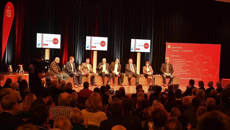 Wie rund 700 Zuhörer im Coburger Kongresshaus die Diskussion mit sechs Kandidaten auf dem Podium zur Landratswahl erleben.