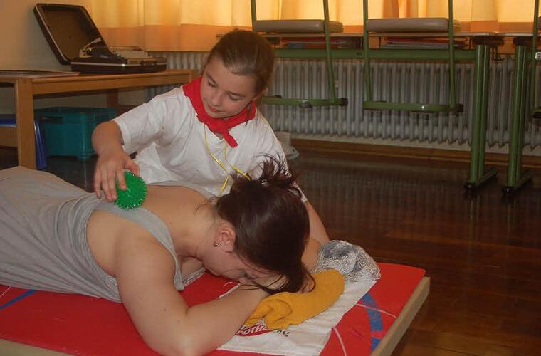 In einem Klassenzimmer ist leise Musik zu hören, Kerzen brennen, Matten liegen auf dem Boden. "Willkommen im Massagetempel", begrüßt Julia Pauls die Besucher. Mit heißen Steinen oder Massagebällen massieren die kleinen Hände der Schüler die Erwachsenen. "Den Raum haben wir für gestresste Eltern und Großeltern eingerichtet", erklärt Rektorin Marie-Luise Albrecht-Müller. Auf die Idee einen Hygienetag zu initiieren, sagt sie, hat sie eine Schülerin gebracht. Ein Mädchen aus der vierten Klasse war es, das ein Referat zum Thema gehalten hat. Der Vortrag hat die Rektorin überzeugt. Deshalb hat sie den Tag "Rund um die Hand" veranstaltet. Am Ende sie begeistert: "Selbst die unruhigste Klasse der Schule war konzentriert bei der Sache."