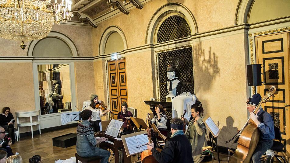Schneefall im Spiegelsaal des Landestheaters Coburg, dicke weiße Flocken, die den Boden bedecken. Es ist Winter - zumindest musikalisch beim "Concert for Kids". Der Schnee ist in diesem Fall natürlich kein echter Schnee, sondern besteht einfach aus einem riesigen weißen Laken.