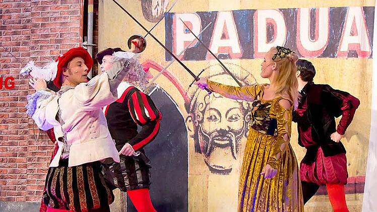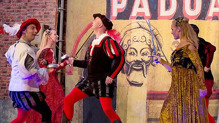 Köstlich: Stephan Ignaz und Robin Koger, die als Gremio und Hortensio die kokette Bianca umschwärmen und nicht nur mit Worten um sie fechten.
