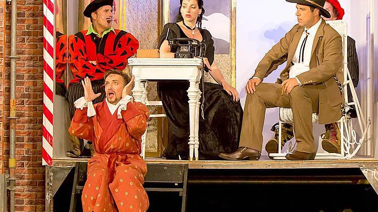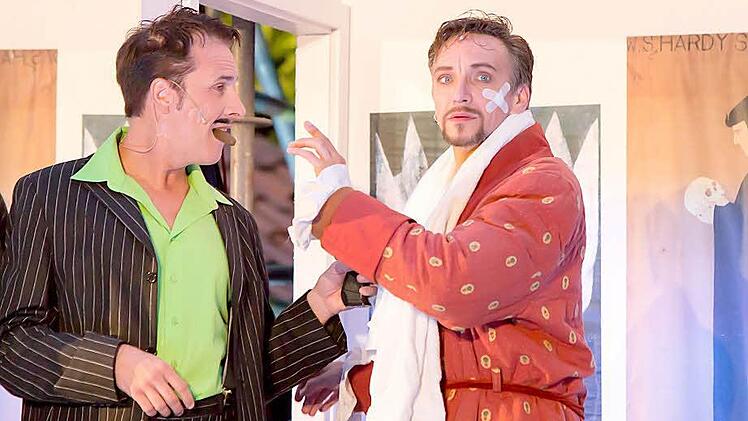 Ein Ganovenpärchen stiftet derweil reichlich Verwirrung hinter den Kulissen. Als Italo-Gangster aus dem Bilderbuch mimen Alexander M. Helmer und John Sweeney mit großem Spielwitz ein gar tolpatschiges Geldeintreiber-Duo.
