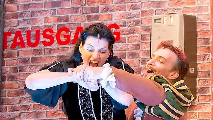 Denn der ist Chef der reisenden Truppe und zugleich Darsteller jenes Petruchio, der bei Shakespeare die störrische Katharina reichlich rabiat zu bändigen weiß. Wer unbedingt will, kann diese Zähmung politisch reichlich unkorrekt nennen und übles Machogehabe argwöhnen. Dieses Machogehabe freilich, Langs Inszenierung beweist es, lässt sich ganz ohne fuchtelnden Moral-Zeigefinger mit einem frechen Augenzwinkern entlarven.