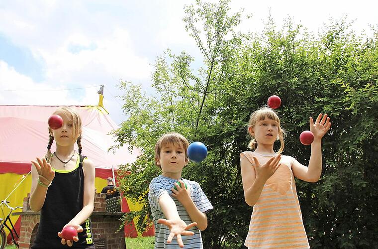 "Ich wollte schon immer mal das Gefühl haben, beim Zirkus dabei zu sein", erklärt Viktoria Klügling. Die Siebenjährige steht im Garten der CoJe und jongliert mit zwei roten Bällen. Maggy Schneider neben ihr nickt zustimmend. Die beiden Mädchen haben sich am Dienstag beim Akrobatik-, Zirkus- und Theaterworkshop in der CoJe kennengelernt. "Maggy ist meine neue Freundin", erläutert Viktoria. Seit drei Tagen sind sie fleißig am Üben.