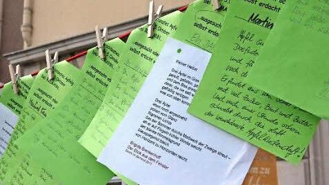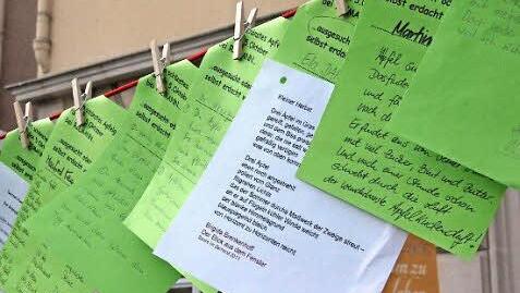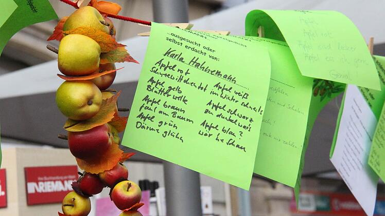Das Kontrastprogramm zur handfesten Coburger Bratwurst lieferte die Buchhandlung Rieman mit Niklaus Scheibli und Thomas Apfel. Die beiden lasen Apfelgedichte, die Kunden der Buchhandlung abgeschrieben oder selbst gedichtet hatten.