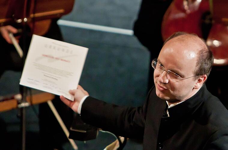 Ein Dirigent funktioniert nicht ohne Orchester Und der solchermaßen belobigte Generalmusikdirektor lenkte Lob und Applaus elegant um auf das Philharmonische Orchester: "Ein Dirigent weiß schon, dass er nicht ganz unwichtig ist. Aber ein Dirigent funktioniert nicht ohne ein Orchester.